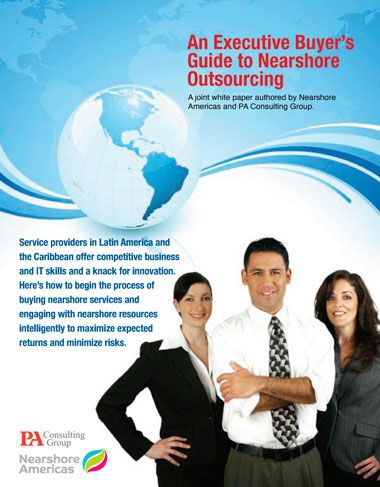 October, 2010: A joint, eight-page white paper analysis by Nearshore Americas and PA Consulting GroupService providers in Latin America and the Caribbean offer competitive business and IT skills and a knack for innovation. Here’s how to begin the process of buying nearshore services and engaging with nearshore resources intelligently to maximize expected returns and minimize risks.